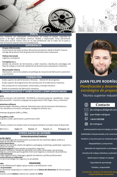 Soy un profesional polifacético con una sólida formación, especializado en planificación y desarrollo estratégico de proyectos. Enfocados principalmente desde una perspectiva tecnologica...